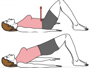 Sırt üstü yere yatın ve kalça ile bel hattınızı yerden yukarıya doğru kaldırın. Yukarıda 3 sn bekleyin ve yukarıda kalçanızı sıkın. Yavaşça bel ve kalçanızı sırayla yere doğru indirin. 10 tekrardan 3 set uygulayabilirsiniz.