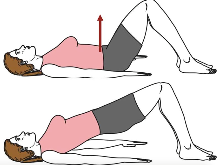 Sırt üstü yere yatın ve kalça ile bel hattınızı yerden yukarıya doğru kaldırın. Yukarıda 3 sn bekleyin ve yukarıda kalçanızı sıkın. Yavaşça bel ve kalçanızı sırayla yere doğru indirin. 10 tekrardan 3 set uygulayabilirsiniz.