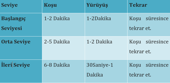 3. Koş-Yürü Yöntemi: Yeni başlayanlar ve koşu sürelerini geliştirmek isteyenler için harika bir yöntemdir. Bu yöntem, yorgun olduğunuzda yürümek ve iyi hissettiğinizde koşmak anlamına gelmez. Seviyenize uygun kombinasyonları deneyebilirsiniz.